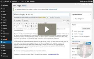 Hover over the page title and click Edit. From here, you can update the title, URL, content such as text, media and links, and the featured image for that page.