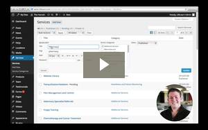 Hover over the service title then click Quick Edit. In the Service Categories check box area, select each of the categories you want this particular service to appear in. Click Update and you’re done.