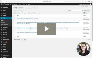 You asked us how to edit an existing frequently asked question (FAQ), so let’s get at it. Go to the left side of your website dashboard and click on FAQs. Scroll through and click on the FAQ you want to edit.