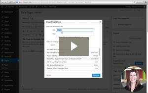 Here’s an extra tip for you: you can also link to existing content in your site from here by entering a search word or phrase and then picking a page from the dropdown menu.